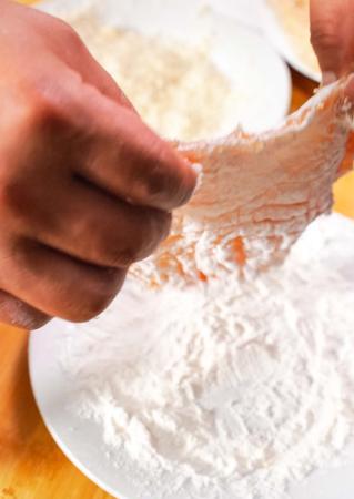 另一方面是要在其表面打上花刀,這都是為了更容易均勻地炸熟,