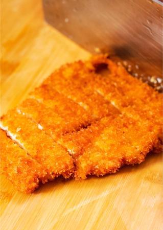 便可以撈出控油,最後將雞排改刀,切成條狀,裝盤即可。