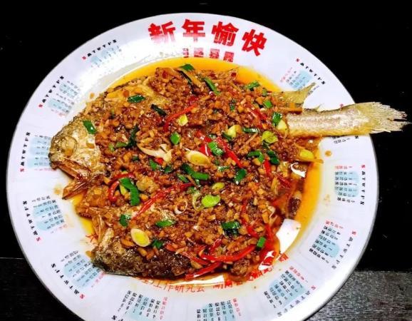 蟶乾紅棗天麻蒸洋鴨年飯的魚必須是一整條,但不固定用什麼魚。可以用蔥燒邊魚,也可以什麼都不放,煎個鹹魚,煎得外酥裡嫩,金黃金黃。上席的魚更講究,一般第七道菜才上魚。魚頭魚尾當餐是不能吃的,只能吃魚中間部分,其餘留待正月初一吃,叫“有吃有餘”“年年有餘”。壓軸的菜是“青菜炒年糕”,寓意來年清吉平安年年高。
