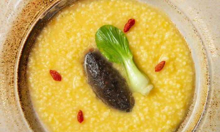 食材:海參1-2條、小米100克、薑絲、蔥花、鹽適量。