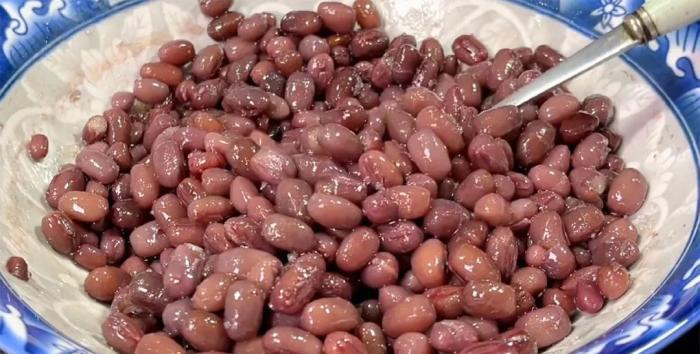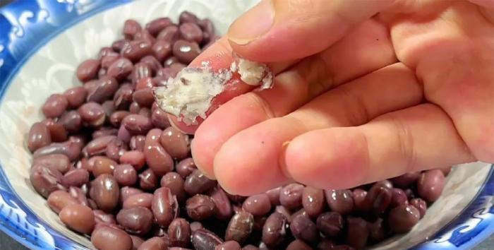 這時紅豆也已經蒸好了,用手一捏就碎,說明紅豆已經很軟爛了。