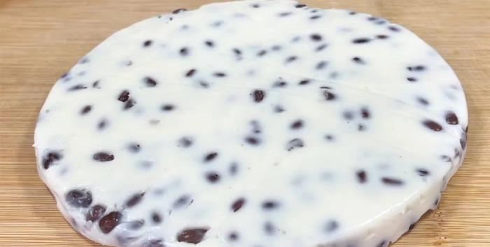 整理好以後,放到冰箱裡冷藏2個小時,讓紅豆牛奶糊凝固成型。